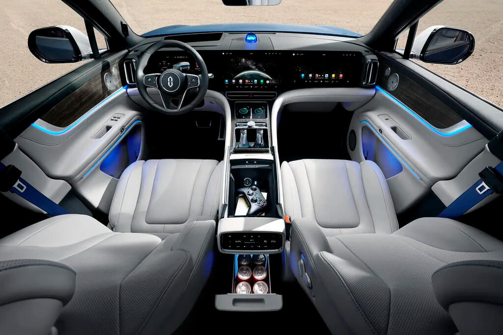 Информационно-мультимедийный комплекс автомобиля работает под управлением новейшей мощной интеллектуальной операционной системы HarmonyOS 4, благодаря чему водителю и пассажирам предлагается уникальный опыт взаимодействия с автомобилем. Кроссовер может иметь до 10 экранов в салоне, в том числе – для пассажиров второго и третьего ряда доступен «кинотеатр» с рулонным экраном и проектором.
